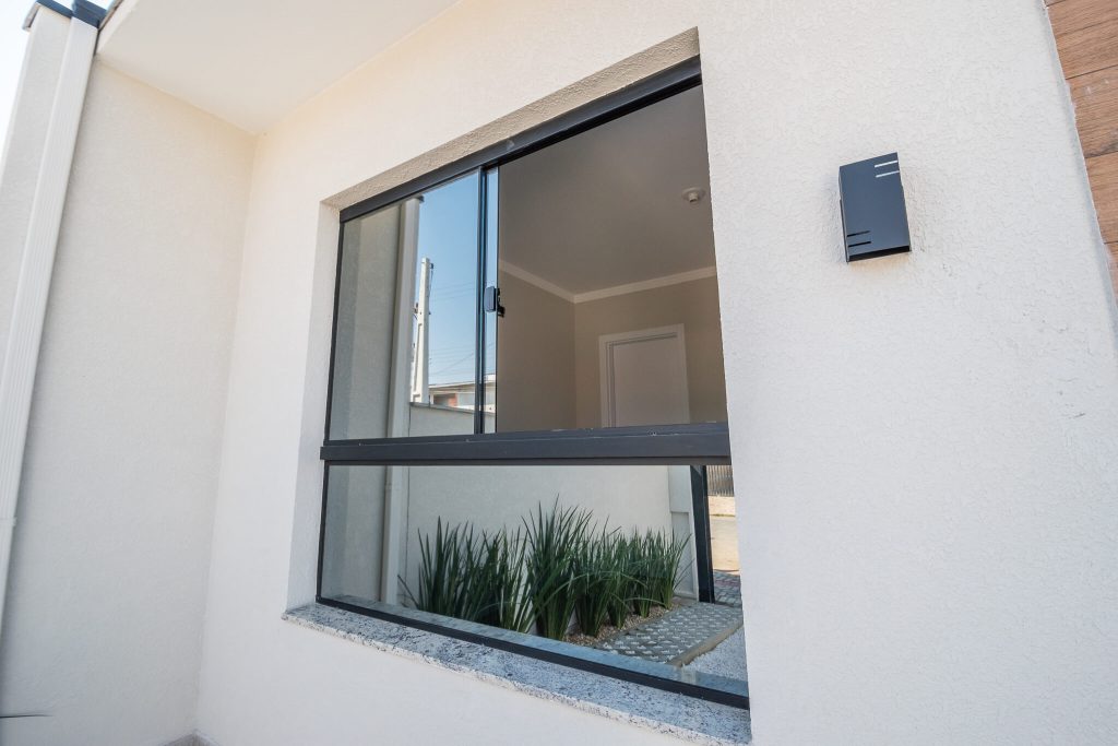 Esquadria: Vidro temperado + Alumínio Rodapé e portas brancas;
